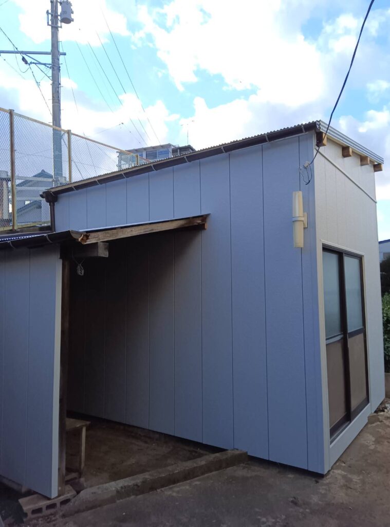 屋根トタンは既存の物を使用することが出来なく 壁も錆がひどかったので、新品に交換し、雨樋も錆で穴があいて使用できなかったため 新品に交換しました。