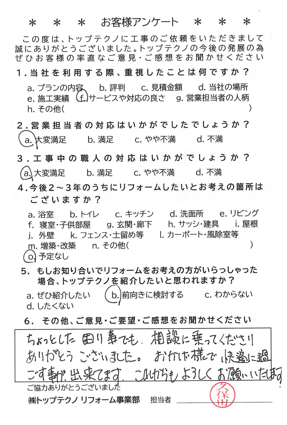 お客様アンケートへのご回答、誠にありがとうございます。