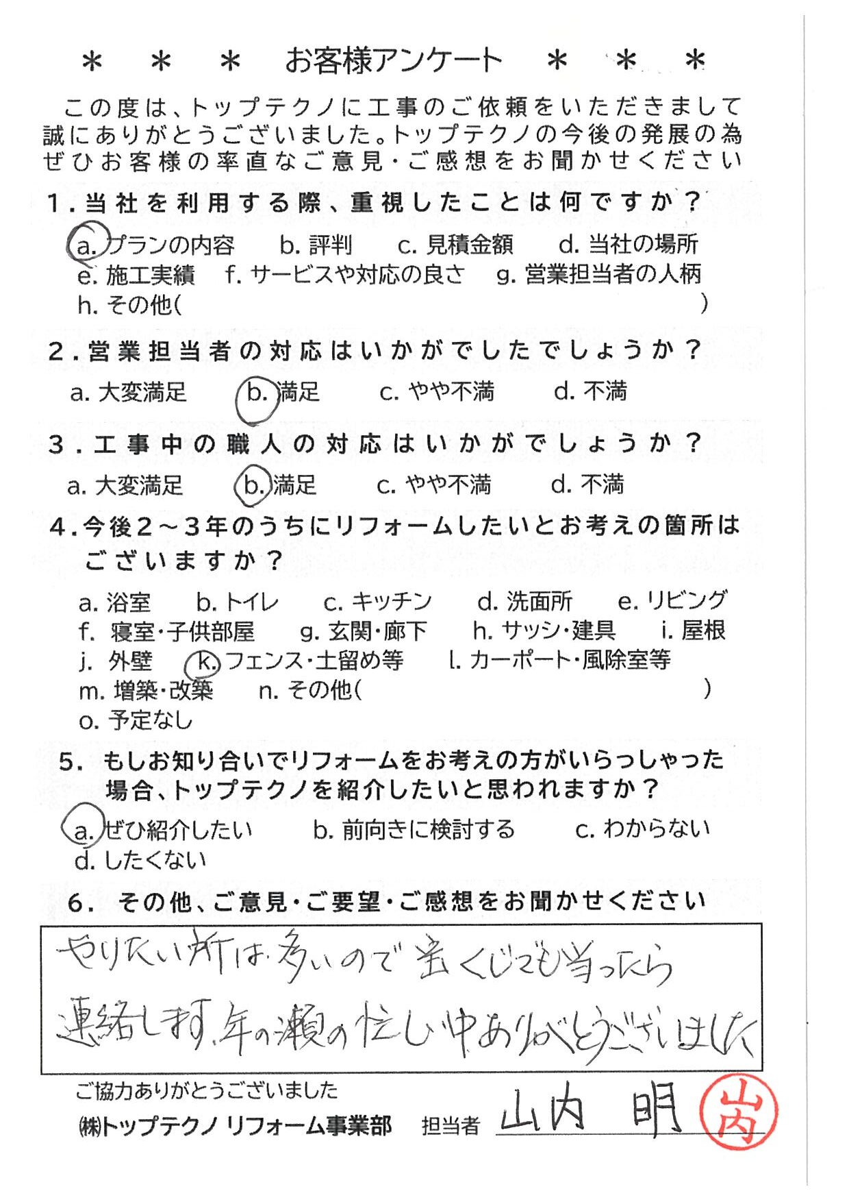 やりたい所は多いので宝くじでも当ったら連絡します。年の瀬の忙しい中ありがとうございました。